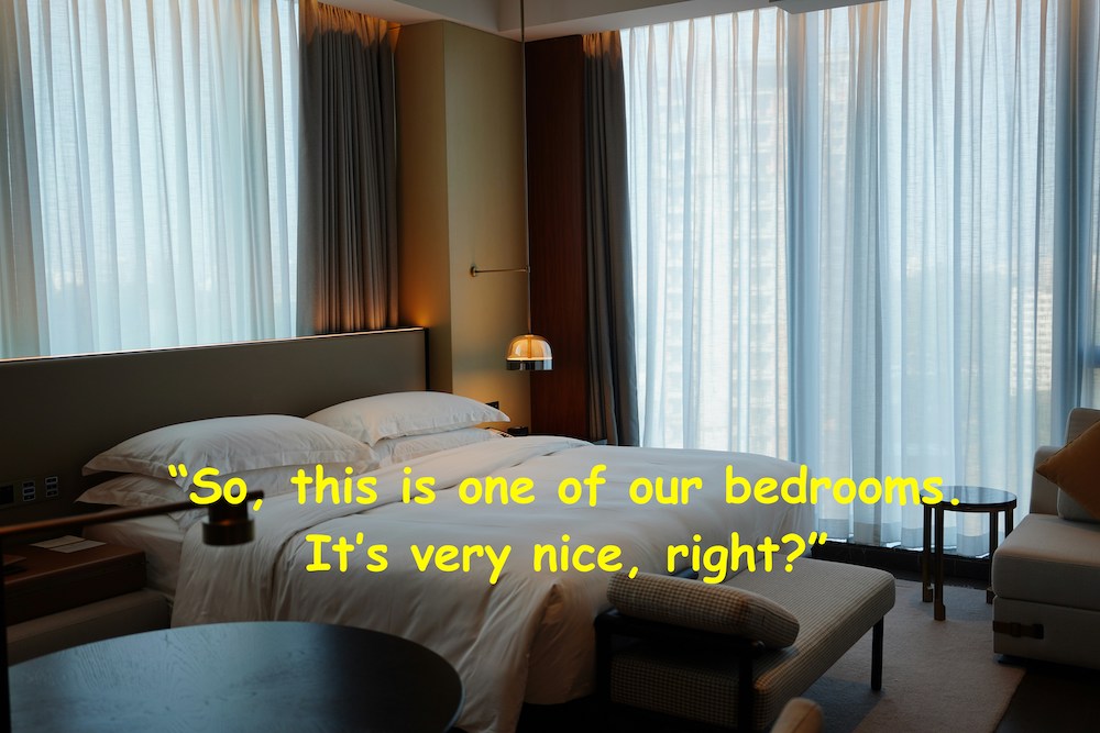 Avoid “This is a double room. This is a meeting room. Here is another meeting room.” Instead, weave a story the client can remember: